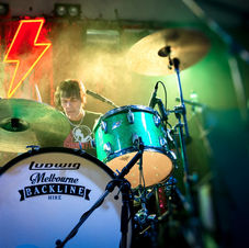 Maple 7ply - Black Galaxy Rack Toms: 13", 14" Floor Toms: 16”, 18" Kick Drums: 22”, 24" Snare: Ludwig Supraphonic 14" (x6.5") or choose your own (Fazerdaze @ The Evelyn Rooftop - 2018)